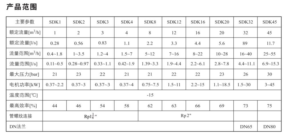 SDK2/SDKT2為配用標準電機的非自吸立式多級離心泵,電機軸和泵軸用聯軸器直接聯接的結構。為滿足水槽或容器的安裝深度,可安裝空套的腔體來改變泵本身的侵入深度。