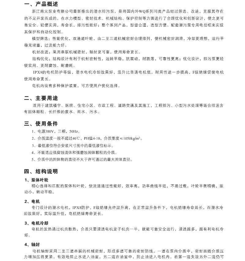 WQ污水污物潛水電泵: